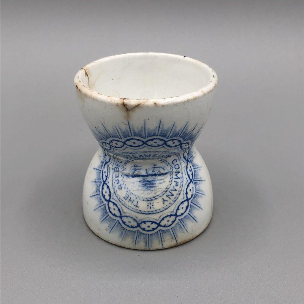 While exploring the third-floor gallery, don’t miss the assortment of ceramics tied to ocean liners: cups and saucers, like this exquisitely-decorated example from the White Star Line, but also egg cups and a butter dish, which transport us back to a time of luxury breakfasts while in transit.