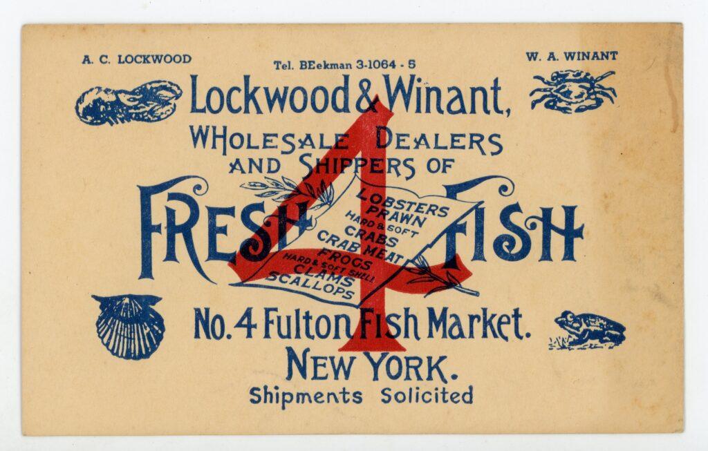 The Seaport Museum owns a large amount of photographs, documents, and ephemera connected to the Fulton Fish Market. While photographs are well inventoried and imaged, documents and ephemera need a bit more “love.” The documents, correspondence, and invoices are part of a partially-processed artificial collection, which means that we do not have a detailed list of all the items it contains as it was assembled at an unspecified date by mixing materials from different donations and acquisitions. As I am cataloging and digitizing them, here are some of my personal favorites.